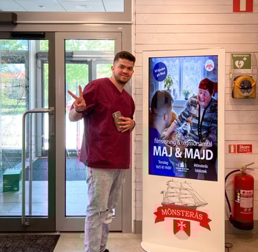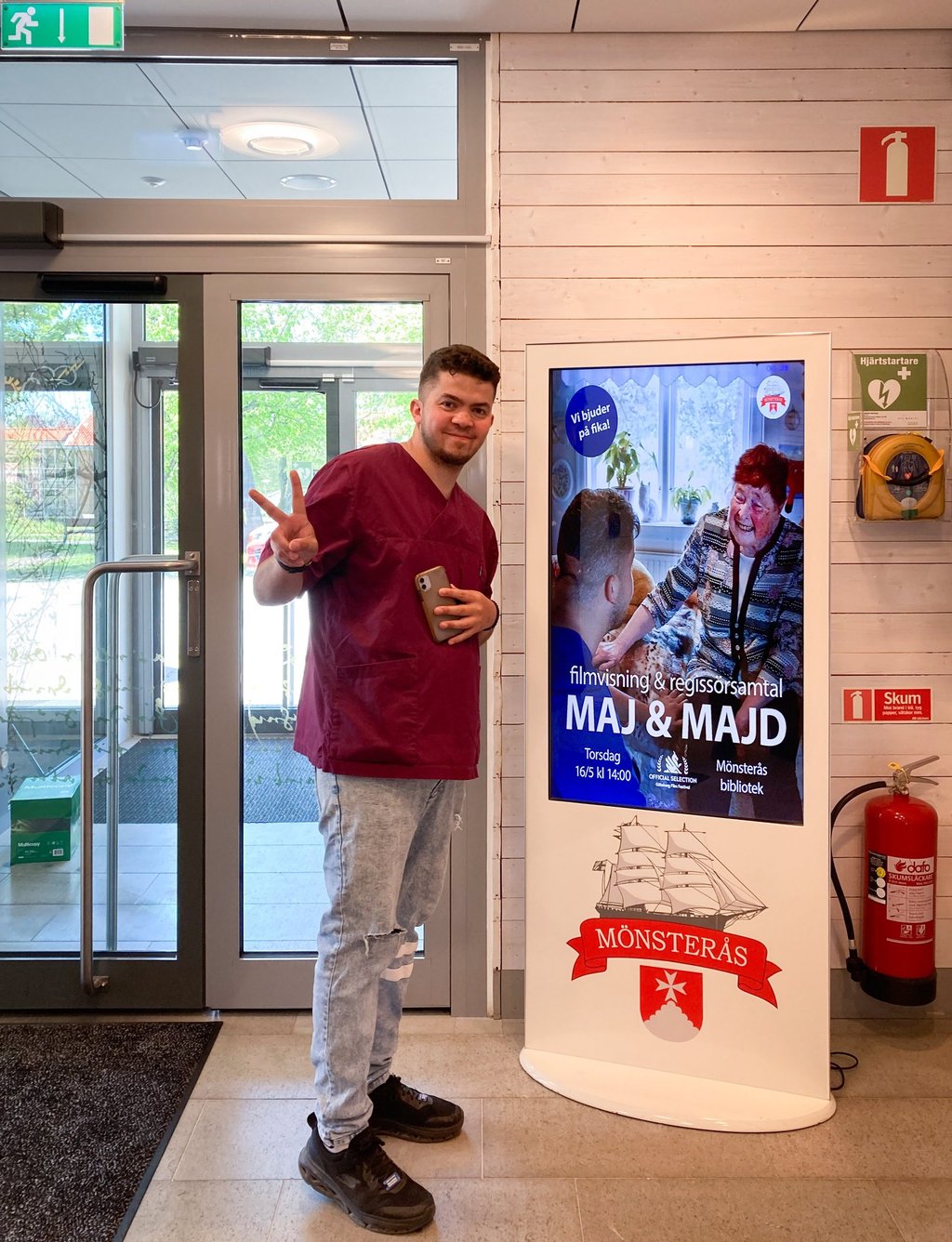 Maj & Majd was screened on four occasions in the towns of Mönsterås, Blomstermåla, and Ålem in the Småland region during the month of May. These screenings attracted over 200 attendees and took place in a variety of venues, including local cinemas, libraries, and residences for the elderly. The diverse locations allowed us to reach a wide audience, ensuring that people of all ages and backgrounds had the opportunity to experience the film.